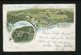 Panorama vom Warteberg aus, Haupt-Strasse, Linde, Gasthaus Zur goldenen Kugel, Statue |
