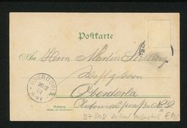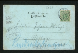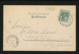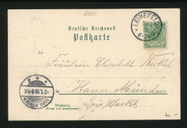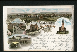 Hünermund'sches Gasthaus mit Saal, Garten-Restaurant und Kegelbahn, Panorama, Kaiserl. Postamt, Wilhelmstrasse, Kirche, Möbeltischlerei v. Joh. Simon |