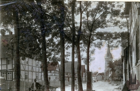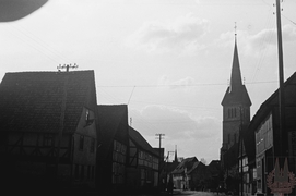 Dorfstraße mit Kirche |