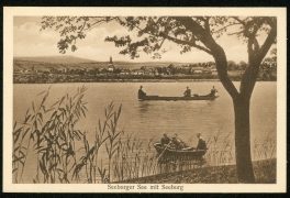 Seeburger See mit Seehaus zum Grafen Isang, Bes. H. Gleitze, Gasthaus ''Ratskeller'', Besitzer H. Gleitze, Seeburg |