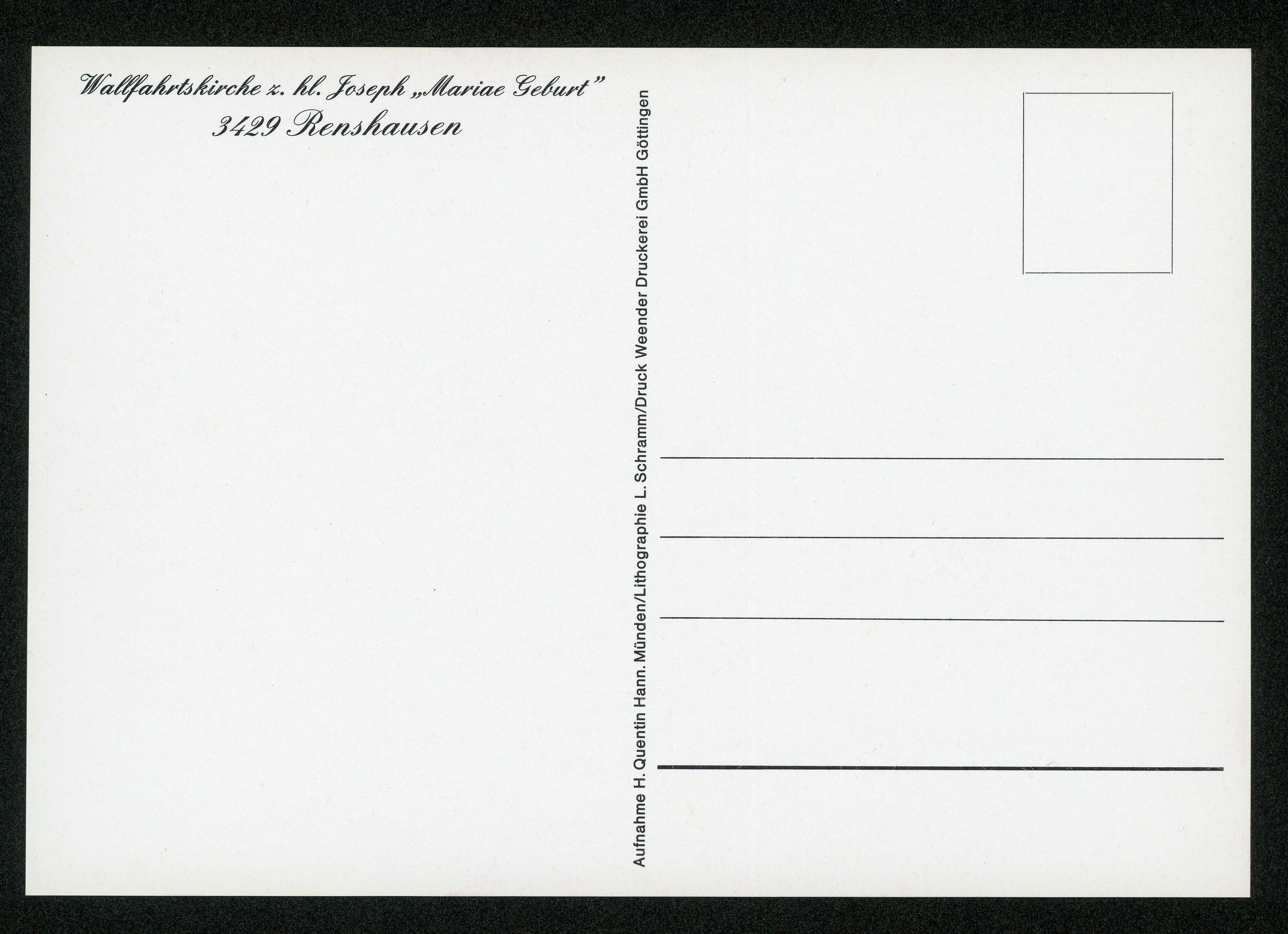 Ort Renshausen Motive Wallfahrtskirche z. hl. Joseph ''Mariae Geburt'' Format groß Verlag Weender Druckerei GmbH, Göttingen Bestell- oder Individualnummer - Tags Josefsbild St. Joseph - Gnadenaltar