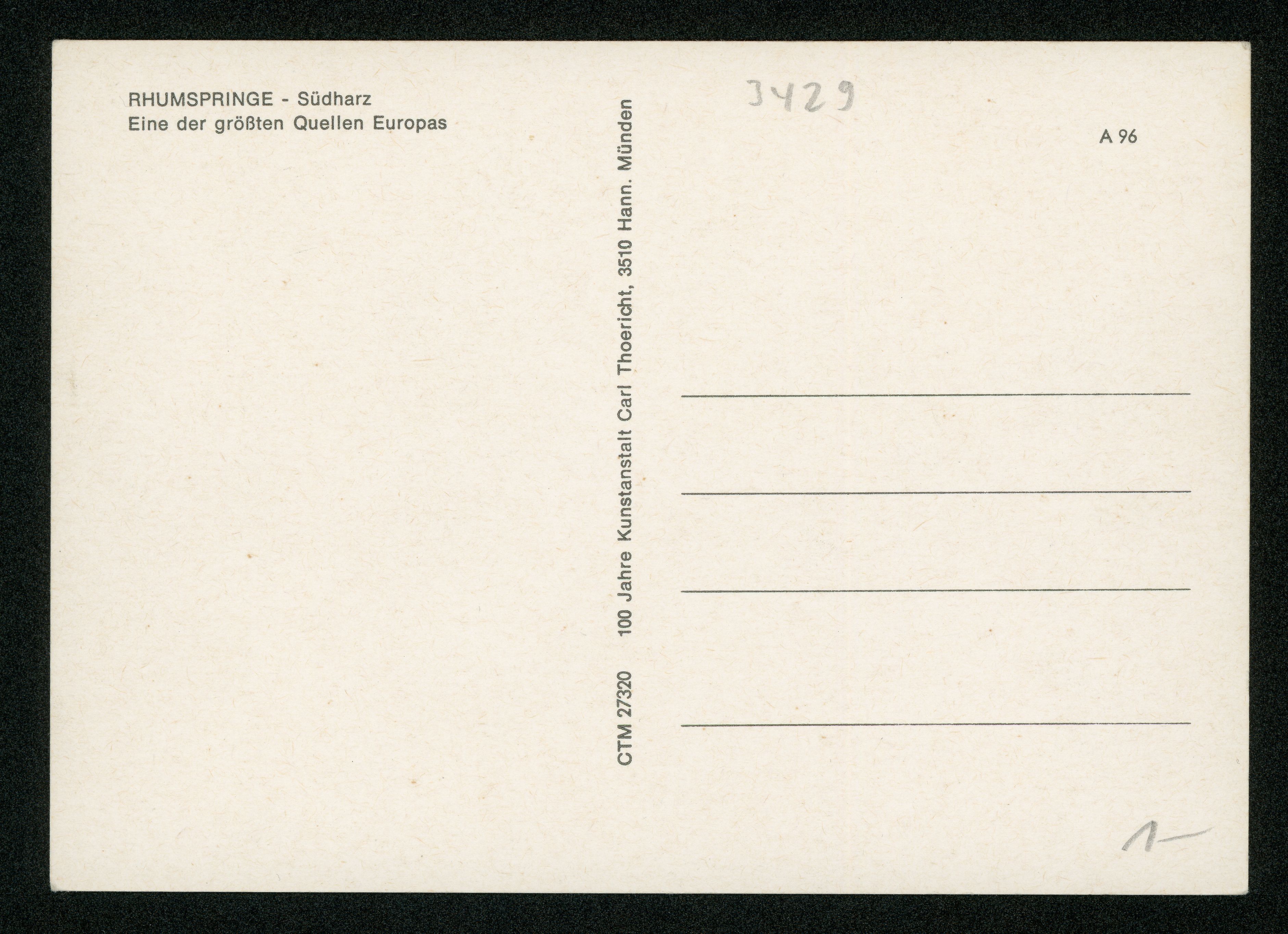 Ort Rhumspringe Motive Rhumequelle Format groß Verlag Carl Thoericht, Hann.-Münden (Karl Thoericht) (CTM) Bestell- oder Individualnummer CTM 27320 A 96