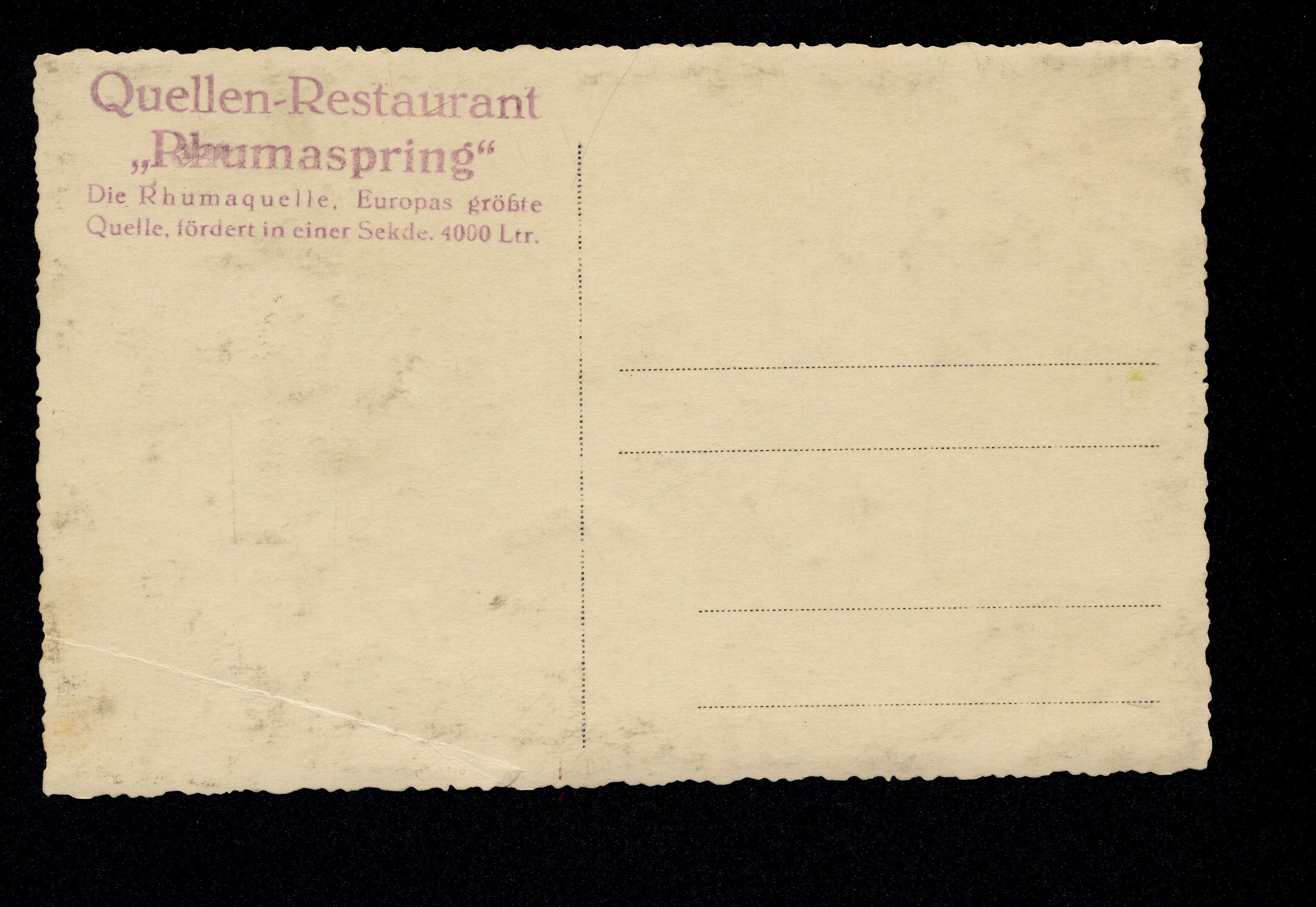 Ort Rhumspringe Beschreibung Variante: geriffelter Rand Motive Rhumequelle Format klein Verlag - Bestell- oder Individualnummer - Tags Quellen-Restaurant ''Rhumaspring''