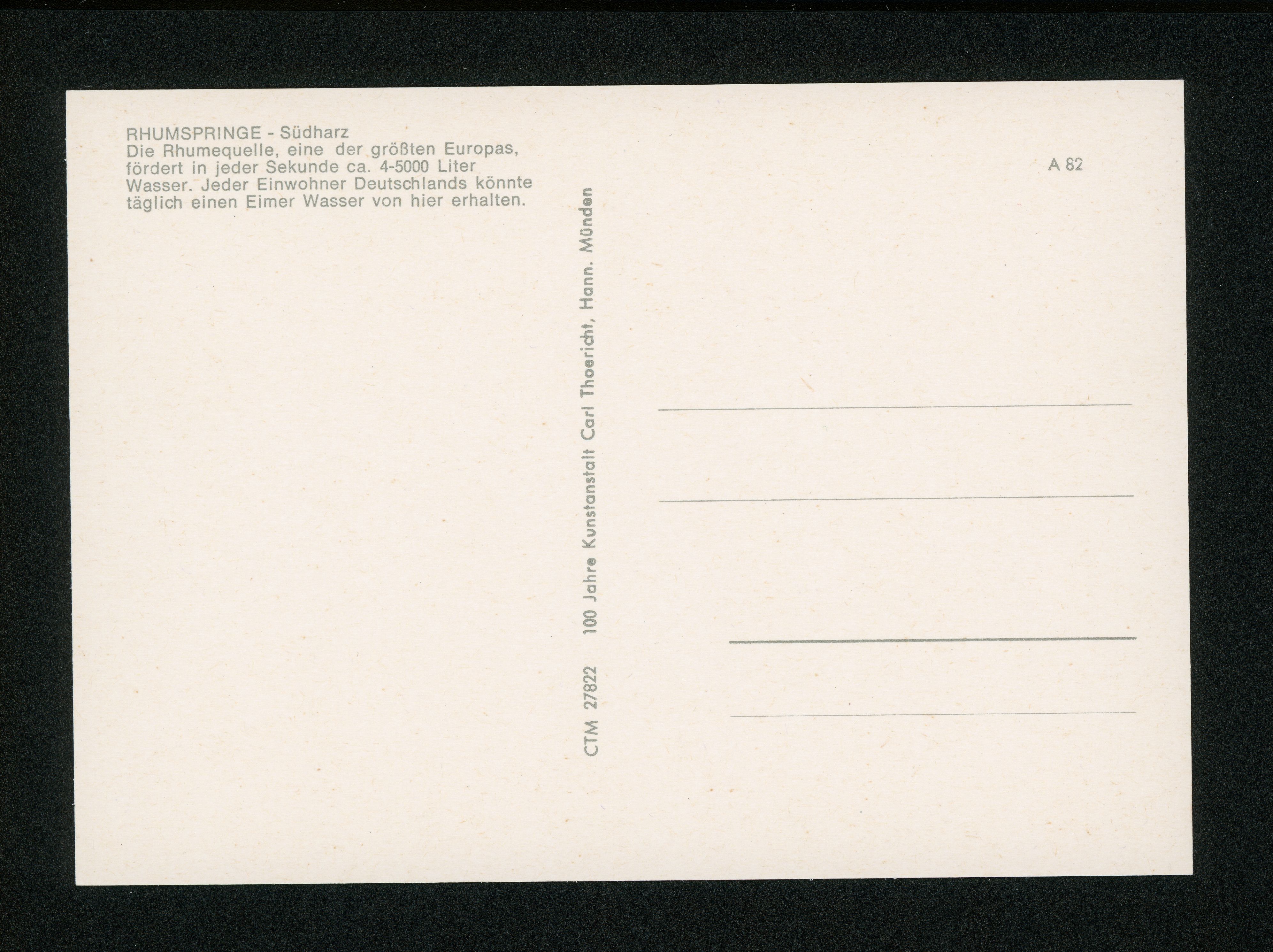 Ort Rhumspringe Motive Rhumequelle Format groß Verlag Carl Thoericht, Hann.-Münden (Karl Thoericht) (CTM) Bestell- oder Individualnummer CTM 27822 A 82