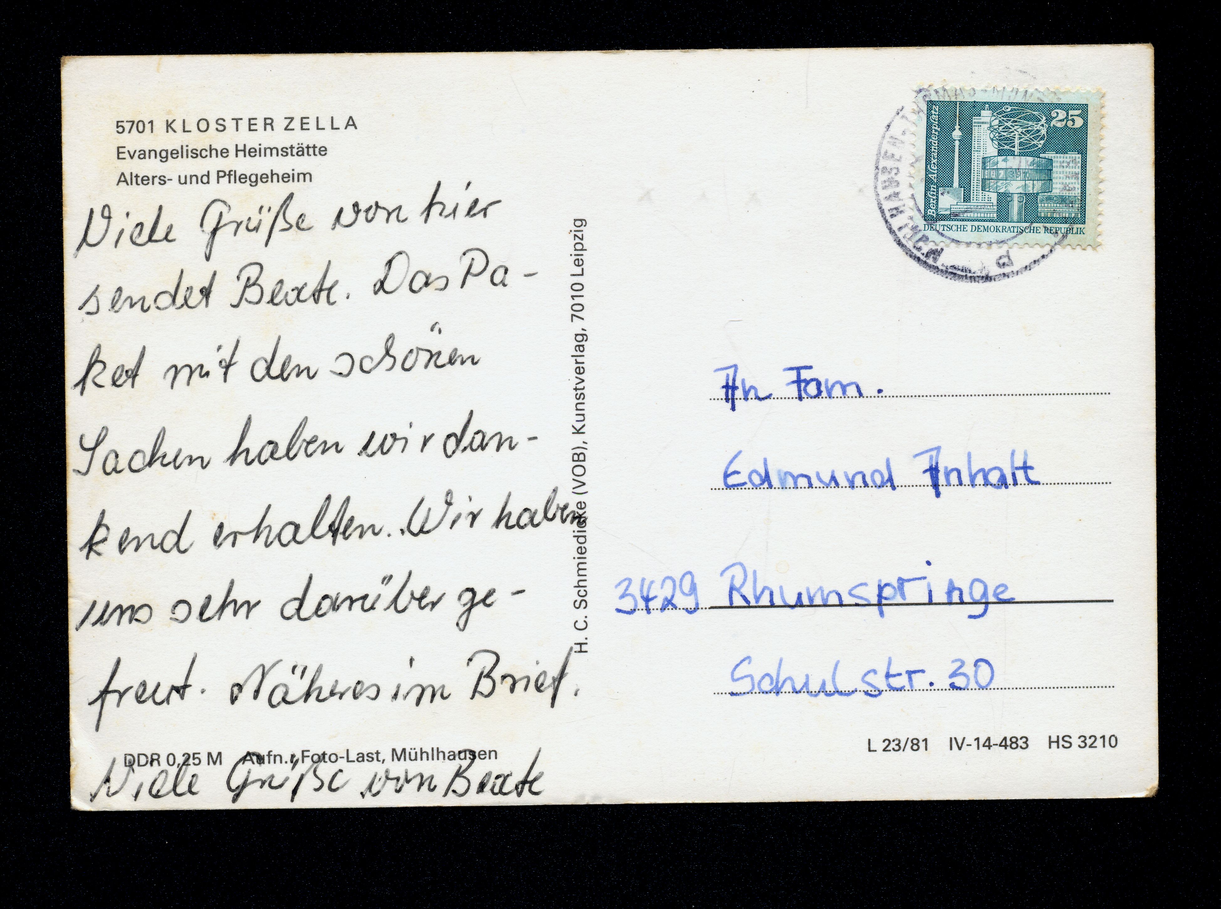 Ort Rodeberg Motive Evangelische Heimstätte Alters- und Pflegeheim Format groß Jahr 1981 Verlag Hans C. Schmiedicke, Leipzig Bestell- oder Individualnummer L 23/81 IV-14-483 HS 3210 Tags Altersheim
