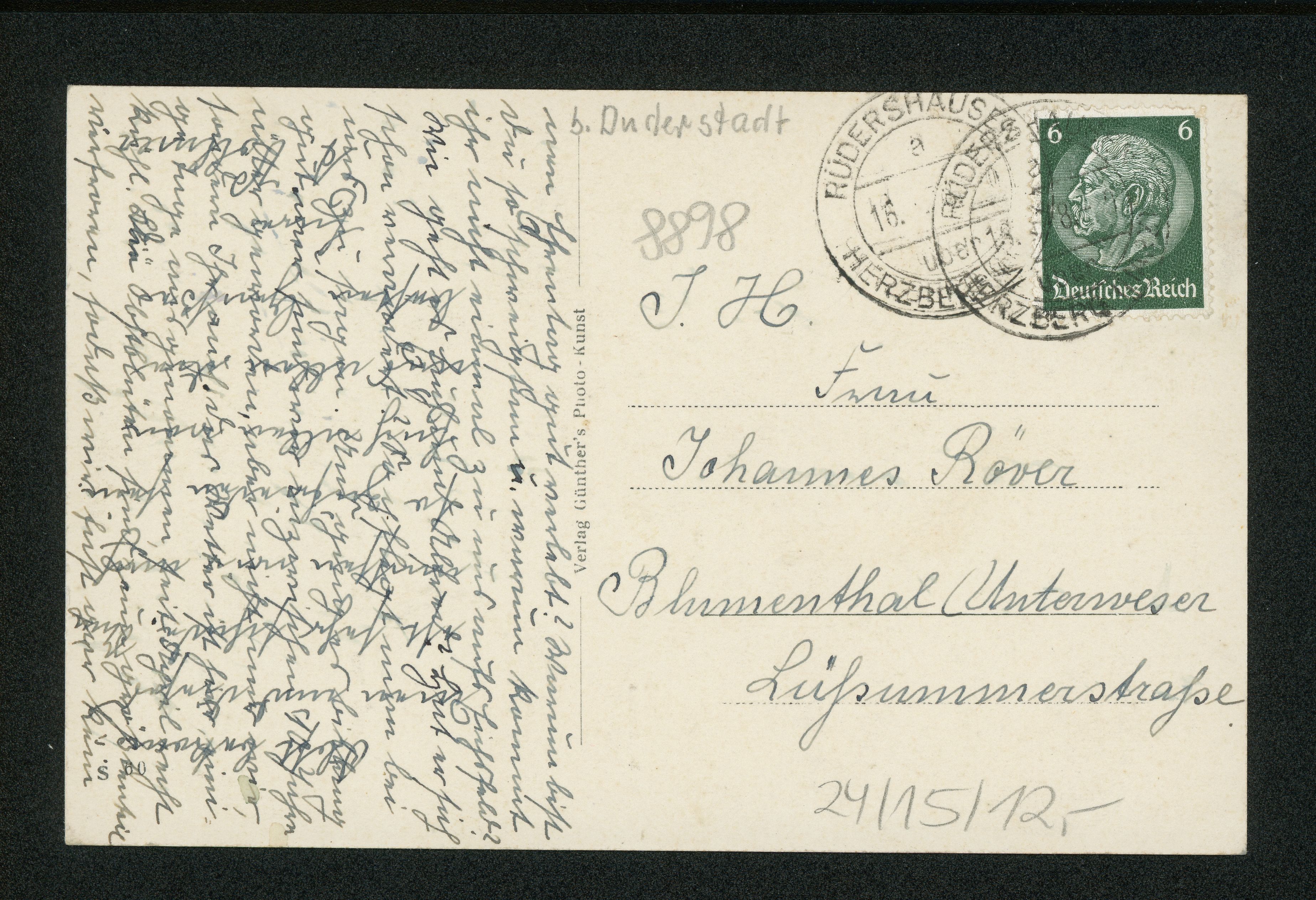 Ort Rüdershausen Motive Kirche mit Pfarrhaus Katharinen-Stift Schulhaus St. Katharinenstift Format klein Jahr 1938 Verlag Günther's Photo-Kunst, Hilkerode a. Harz Bestell- oder Individualnummer S 60