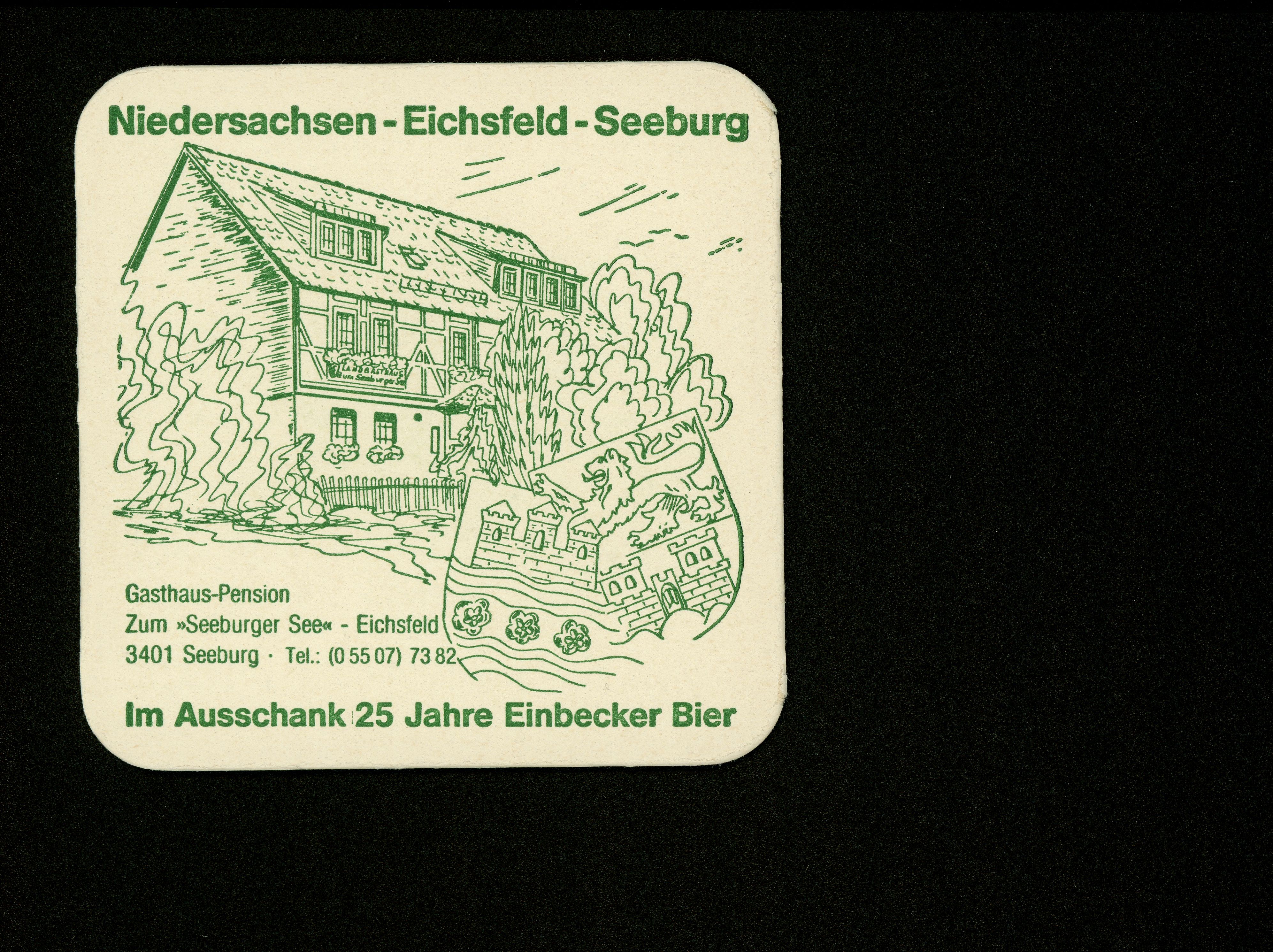 Ort Seeburg - Belege Beschreibung Bierdeckel Motive Gasthaus-Pension Zum Seeburger See - Eichsfeld Format Sonderformat Verlag - Bestell- oder Individualnummer - Tags Einbecker Bier