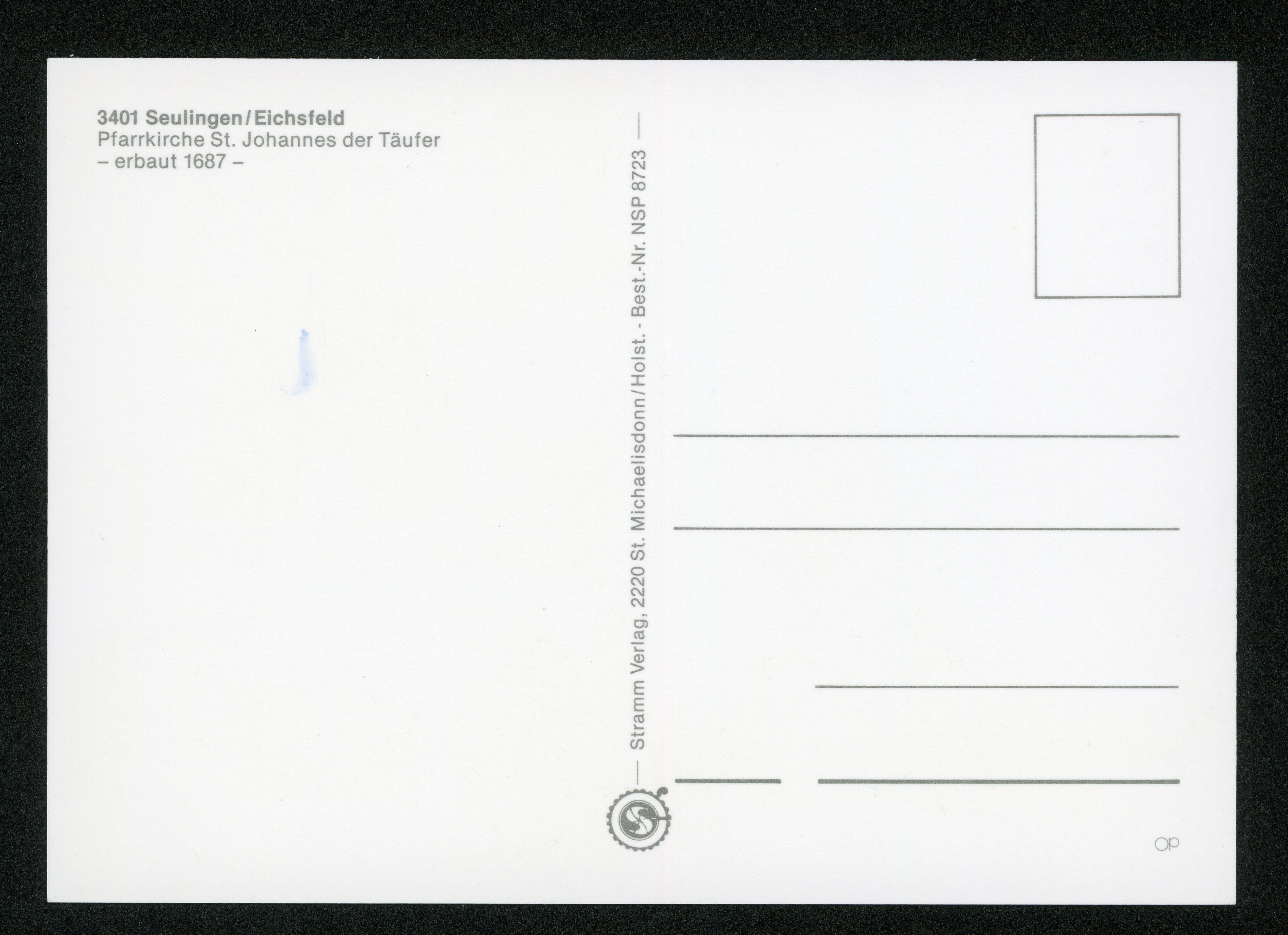 Ort Seulingen Motive Pfarrkirche St. Johannes der Täufer Format groß Verlag Stramm, St. Michaelisdonn / Holst. Bestell- oder Individualnummer Best.-Nr. NSP 8723 Tags Altar