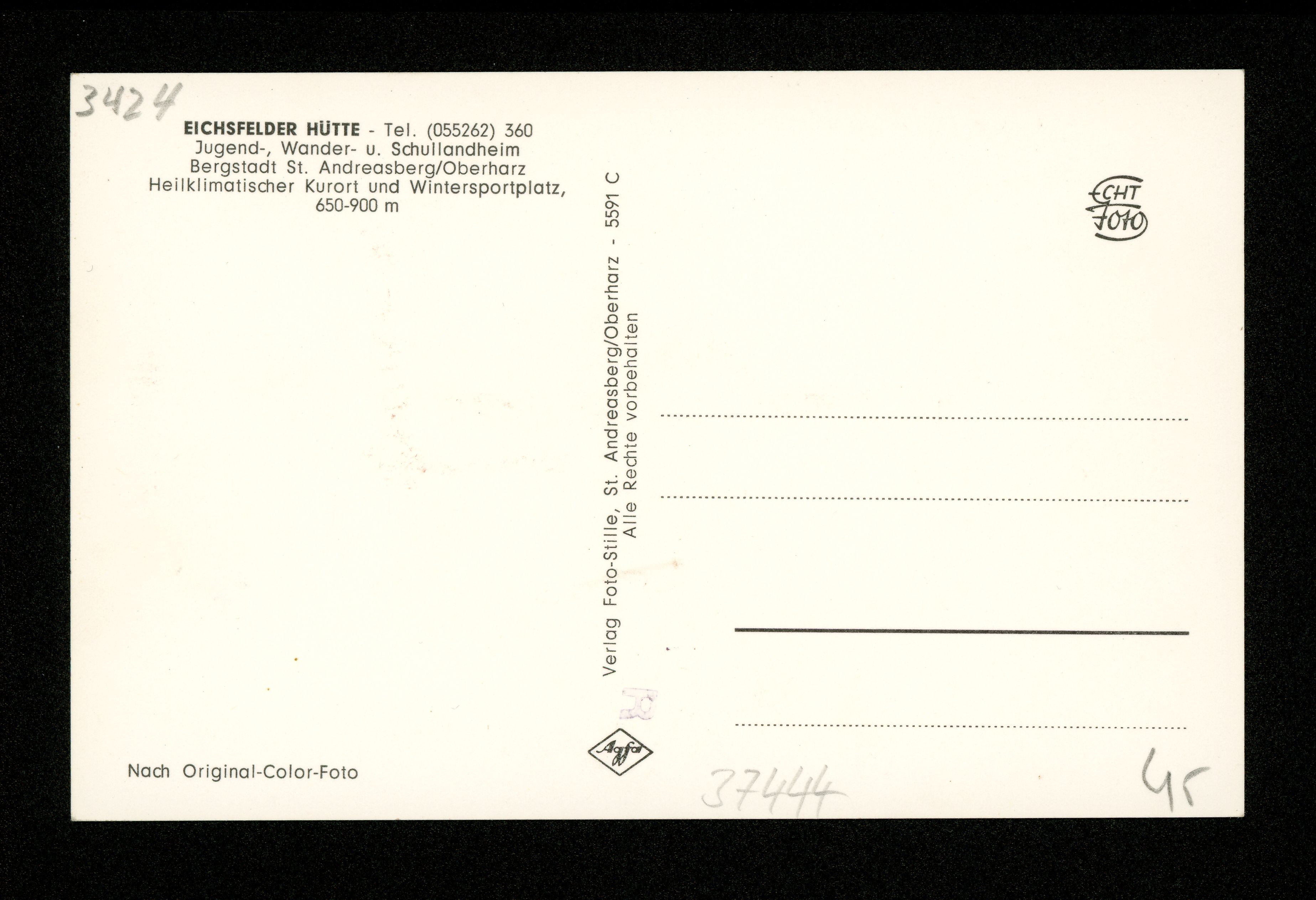 Ort St. Andreasberg Motive Eichsfelder Hütte Format klein Verlag Werner Stille, St. Andreasberg/Oberharz Bestell- oder Individualnummer 5591 C Tags Schullandheim des Landkreises Göttingen Jugendherberge Winter