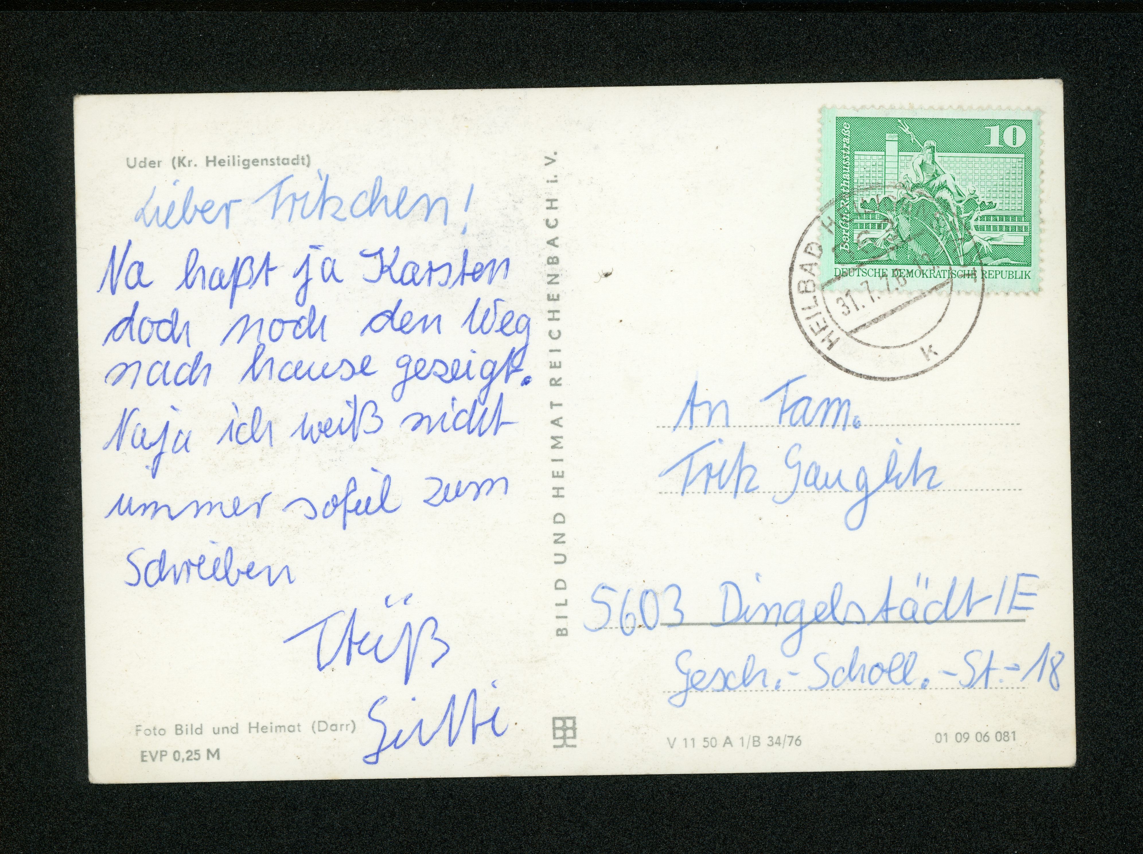 Ort Uder Motive Panorama Format groß Jahr 1976 Verlag Bild und Heimat, Reichenbach i. V. (VEB Bild und Heimat) Bestell- oder Individualnummer V 11 50 A 1/B 34/76 01 09 06 081 Versanddatum 31.07.1976