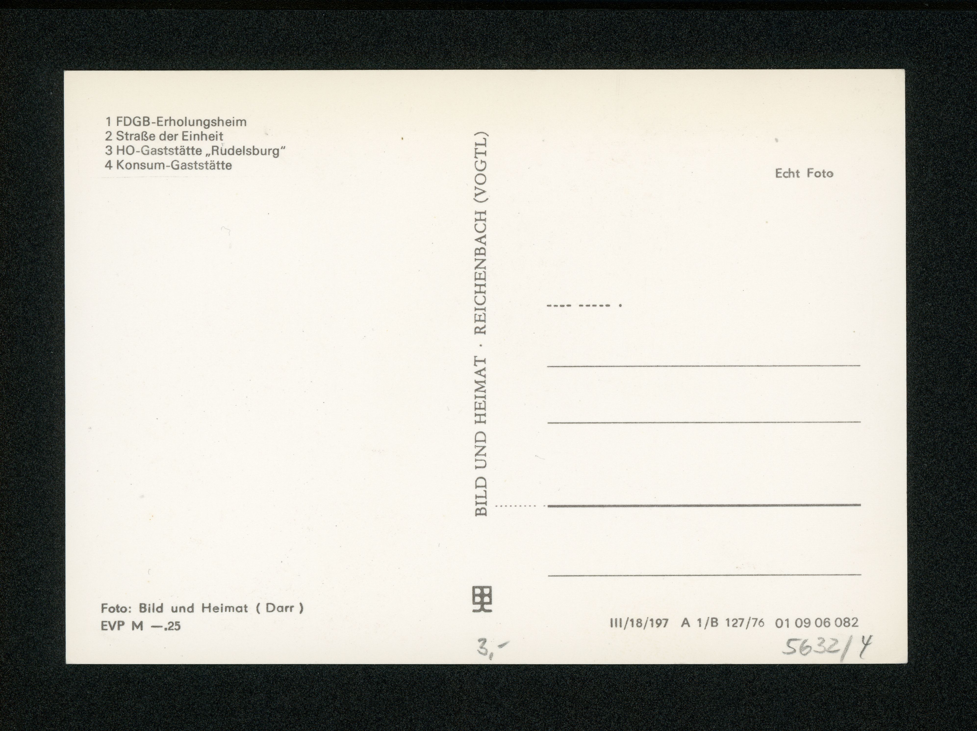 Falscher Aufdruck. Richtig wäre: HO-Gaststätte ''Riedelsburg''