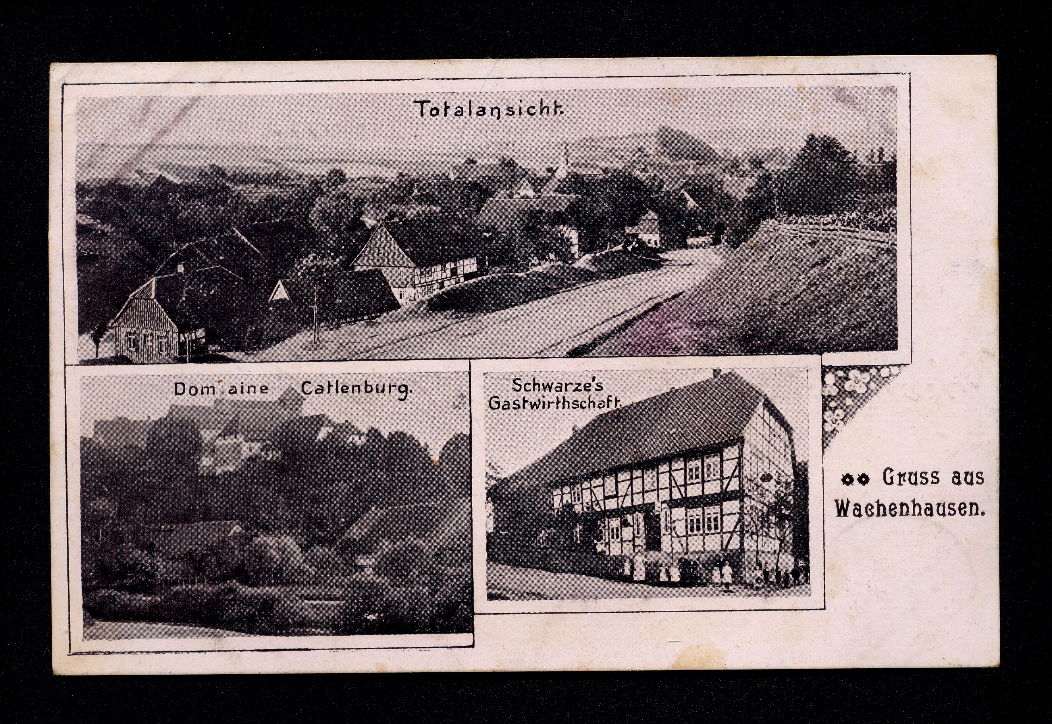 Ort Wachenhausen Motive Totalansicht Domaine Catlenburg Schwarze's Gastwirthschaft Format klein Jahr 1907 Verlag - Bestell- oder Individualnummer - Versanddatum 25.07.1907 Tags Katlenburg Gasthaus
