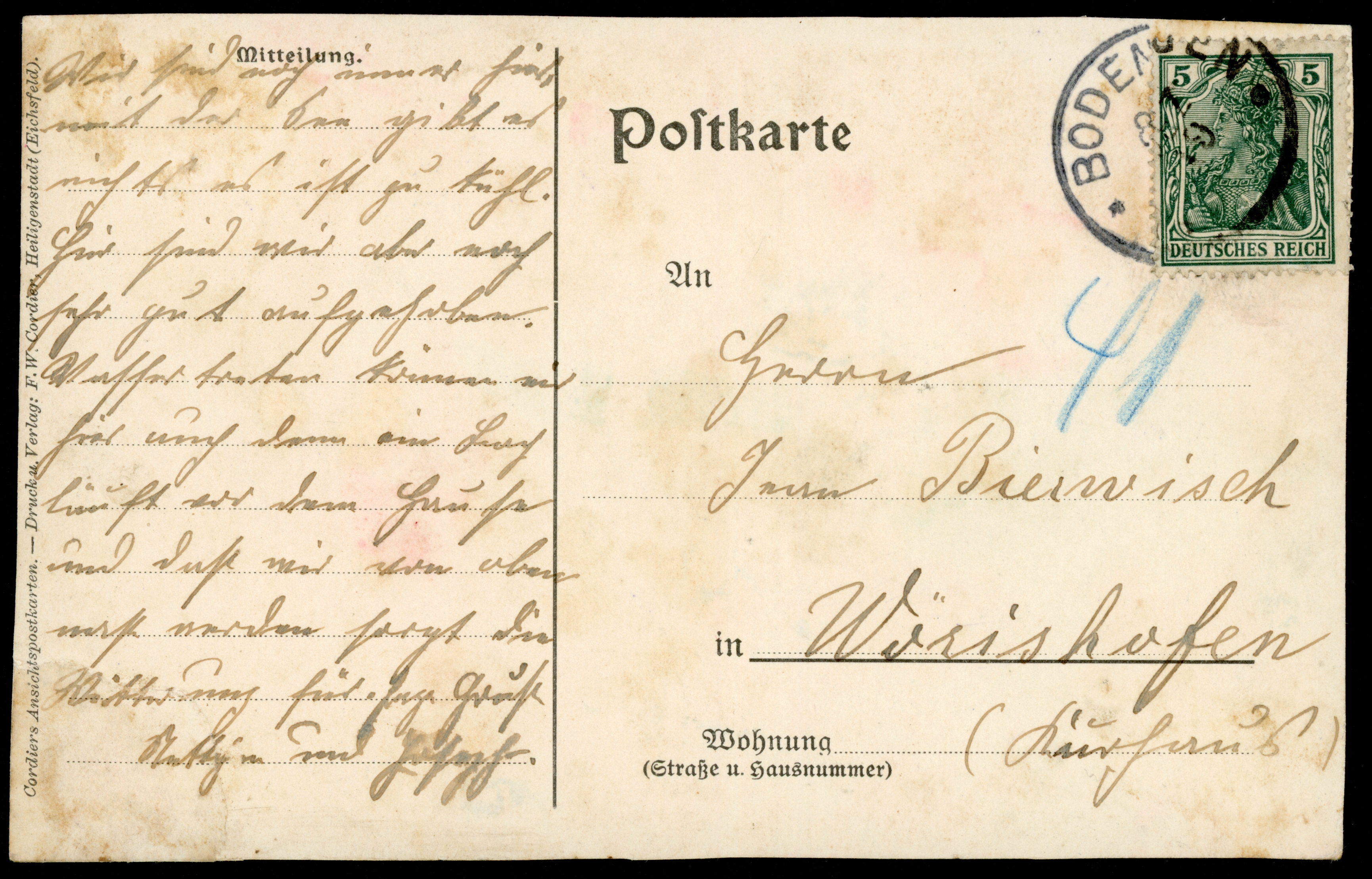 Ort Westhausen Beschreibung Variante "Vorderseite" Motive Panorama Kirche Viaduct Gotthardt'sche Gastwirtschaft Reiter's Gastwirtschaft Schwalbe Format klein Verlag F. W. Cordier, Heiligenstadt Bestell- oder Individualnummer -