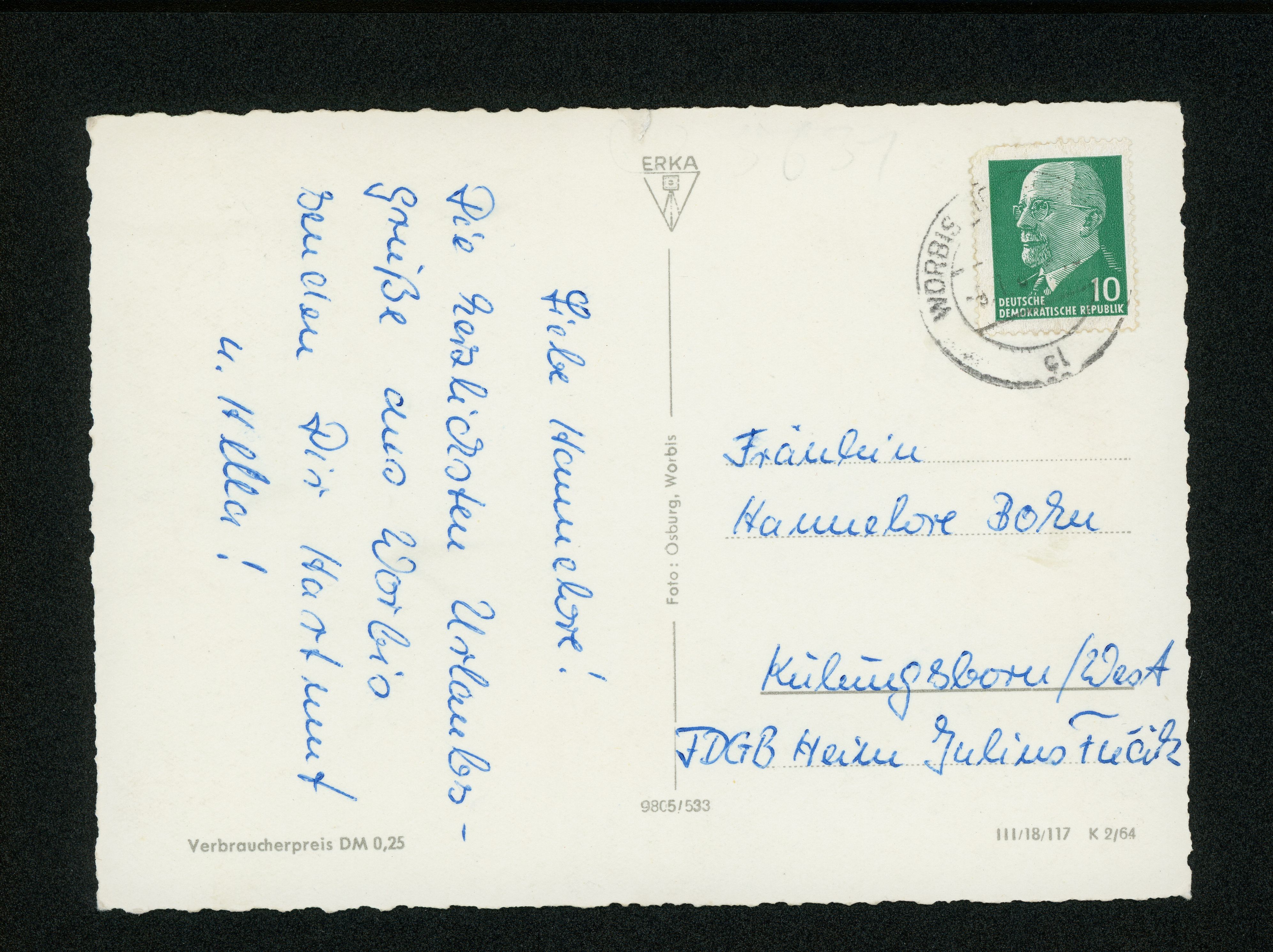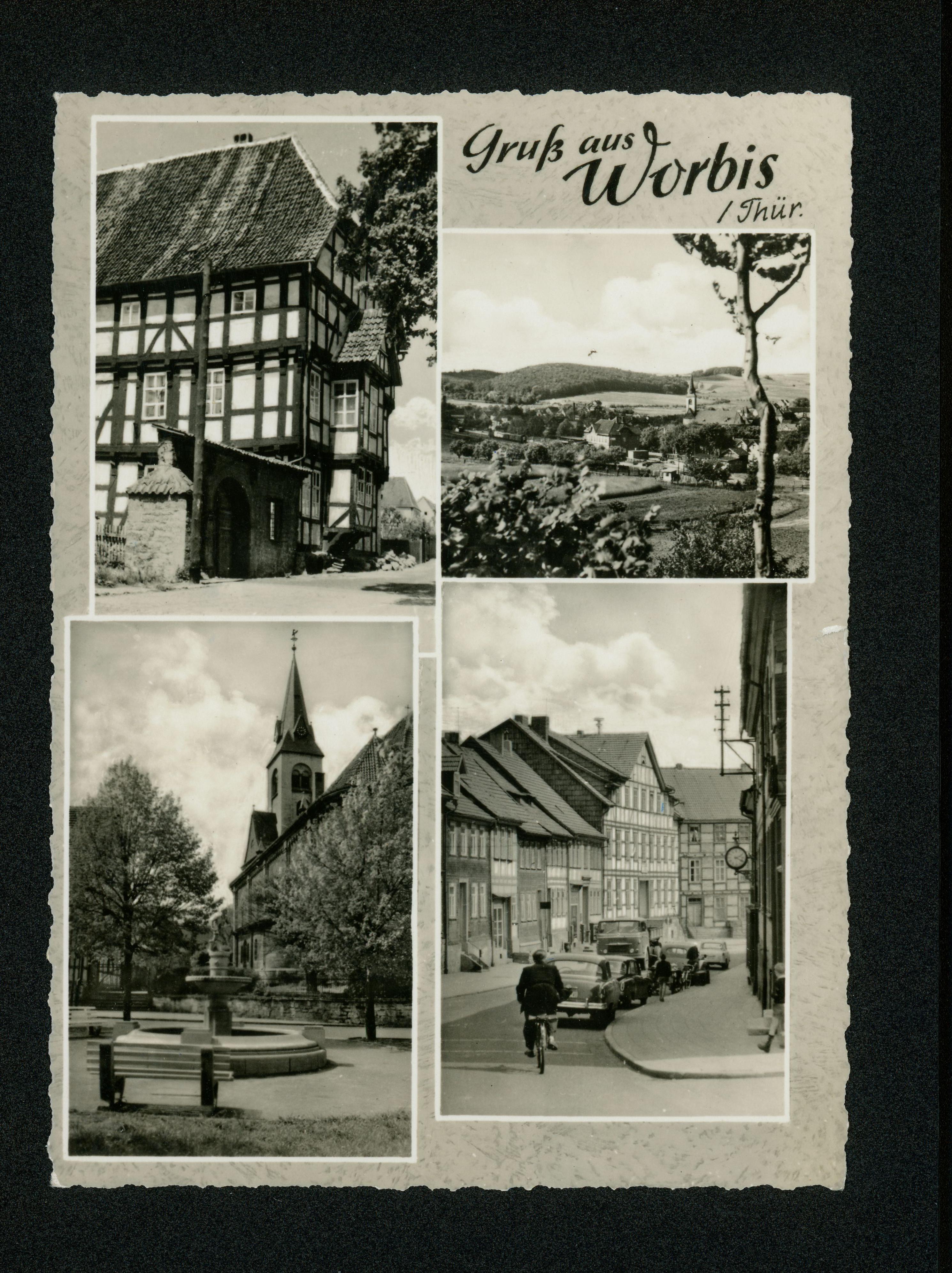 Ort Worbis Motive Marktbrunnen Krengeljäger Teilansicht Straßenansicht Rathaus Format groß Jahr 1964 Verlag Osburg, Worbis Bestell- oder Individualnummer 9805/533 III/18/117 K 2/64
