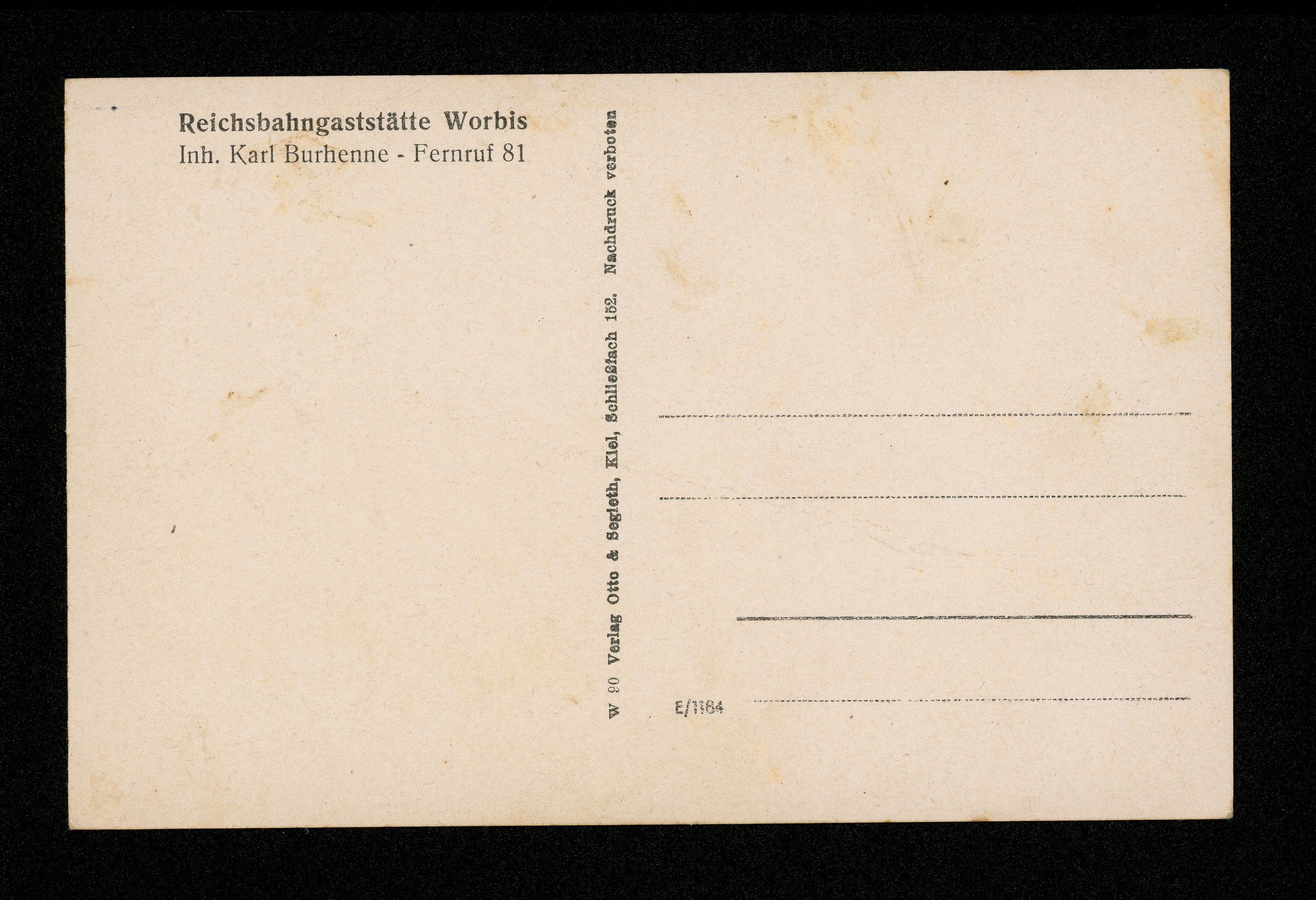 Ort Worbis Motive Teilansicht Reichsbahngaststätte Format klein Verlag Otto & Segieth, Kiel Bestell- oder Individualnummer W 90 Tags Gasthaus Karl Burhenne