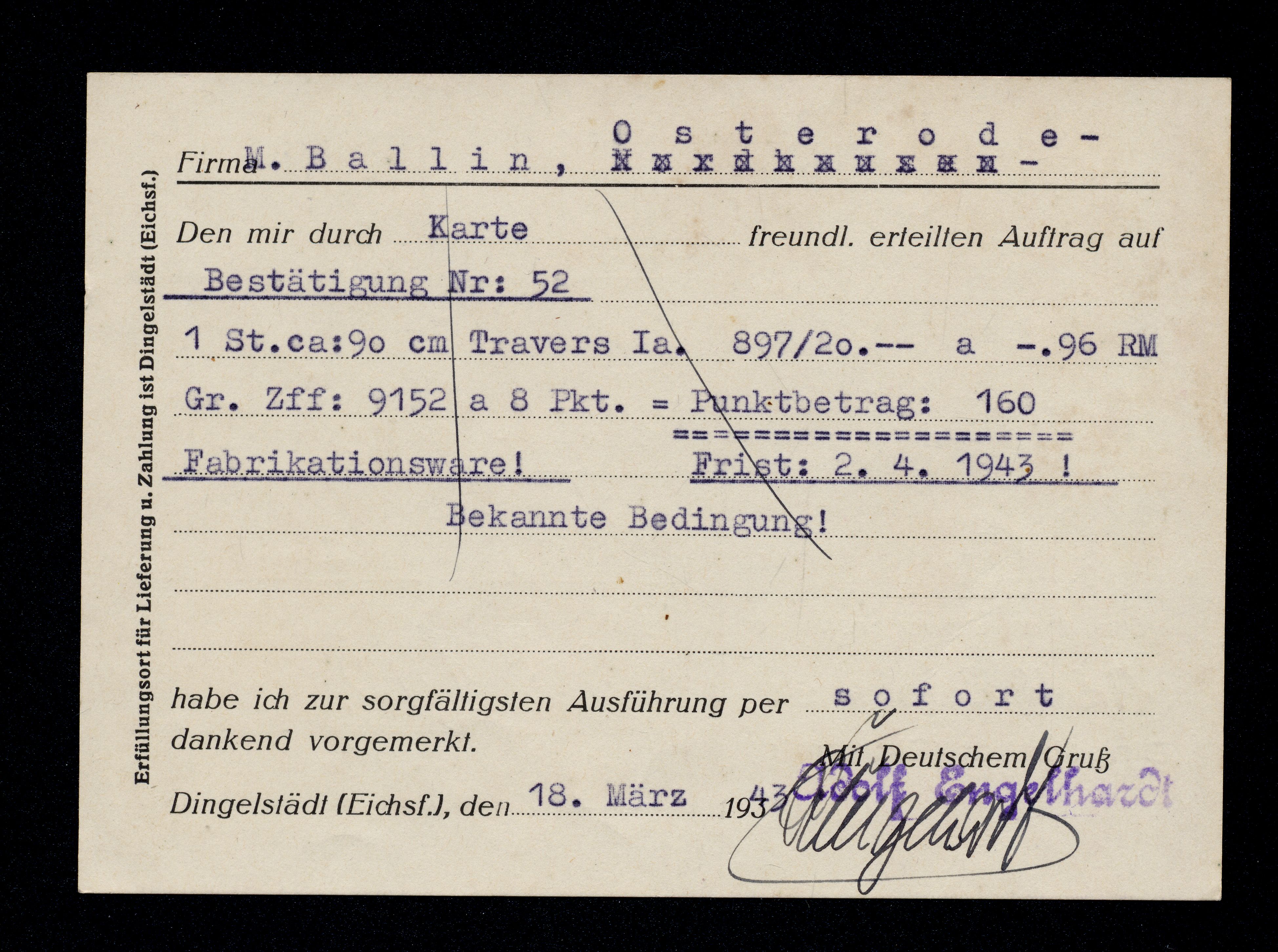 Ort Dingelstädt Motive Weberei wollener u. halbwollen. Waren Adolf Engelhardt Format groß Jahr 1943 Verlag - Bestell- oder Individualnummer - Versanddatum 18.03.1943
