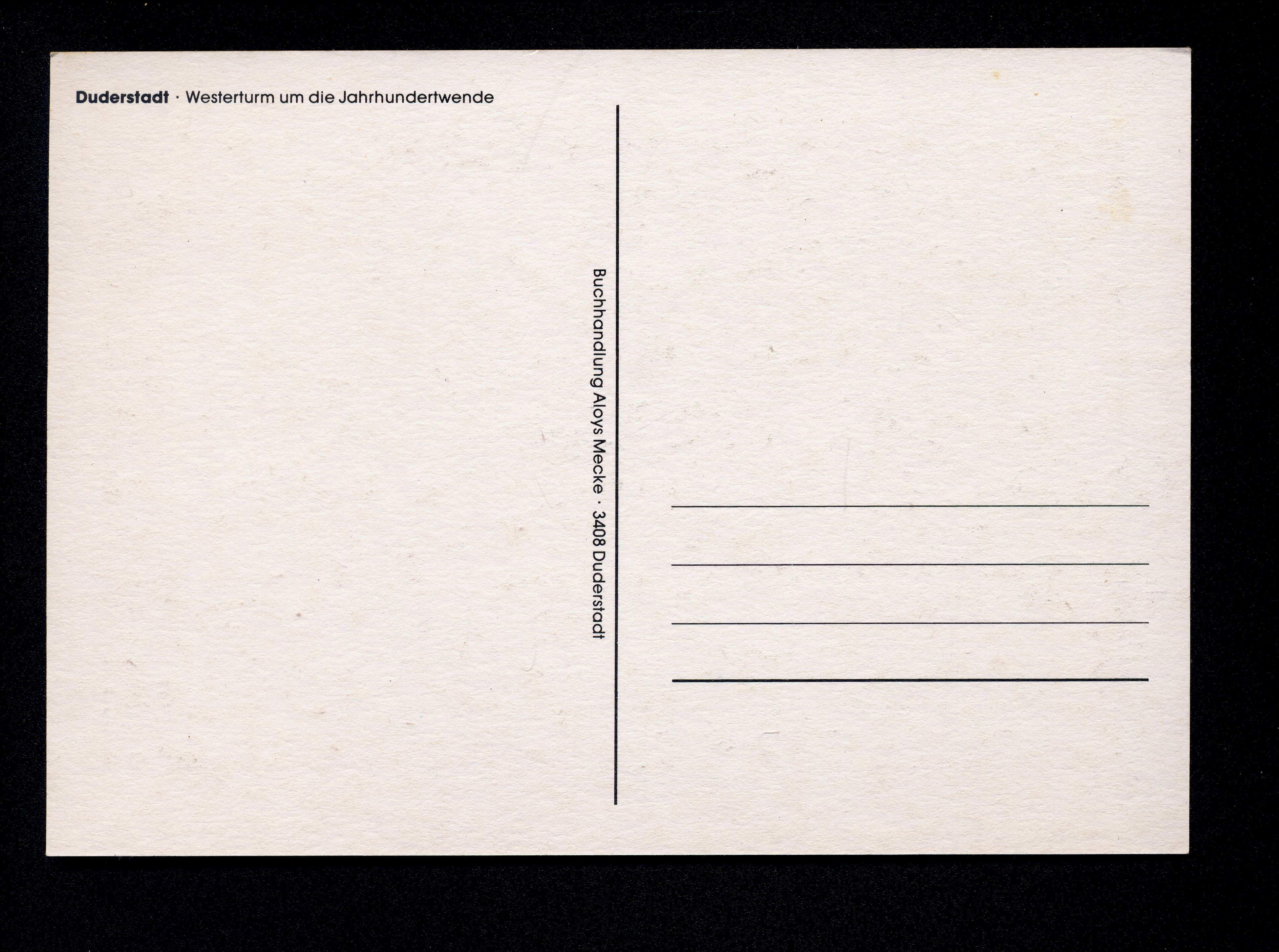 Ort Duderstadt Beschreibung Nachdruck Motive Westerturm m. alter Stadtmauer Format groß Verlag Aloys Mecke, Duderstadt Bestell- oder Individualnummer - Tags Westerturm um die Jahrhundertwende