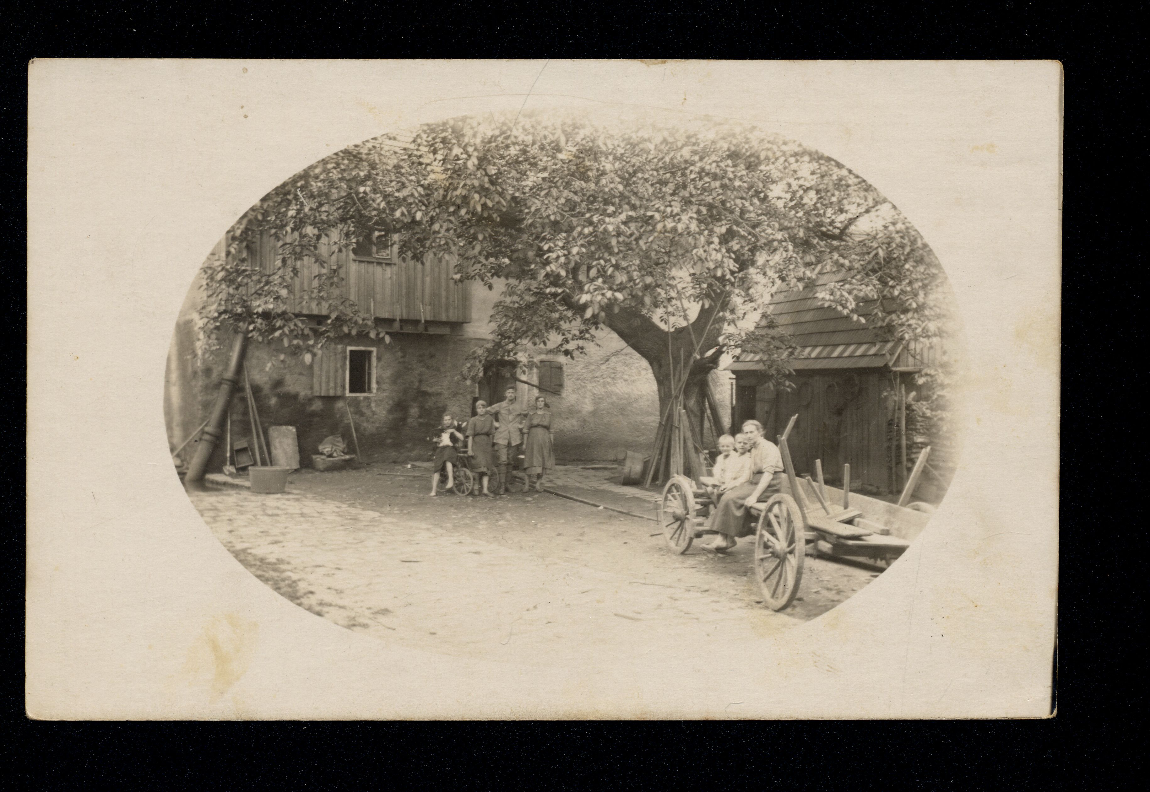 Ort Duderstadt Motive Hinterhof Tante [unleserlich] Format klein Verlag - Bestell- oder Individualnummer - Tags Gruppenbild Ziege Leiterwagen