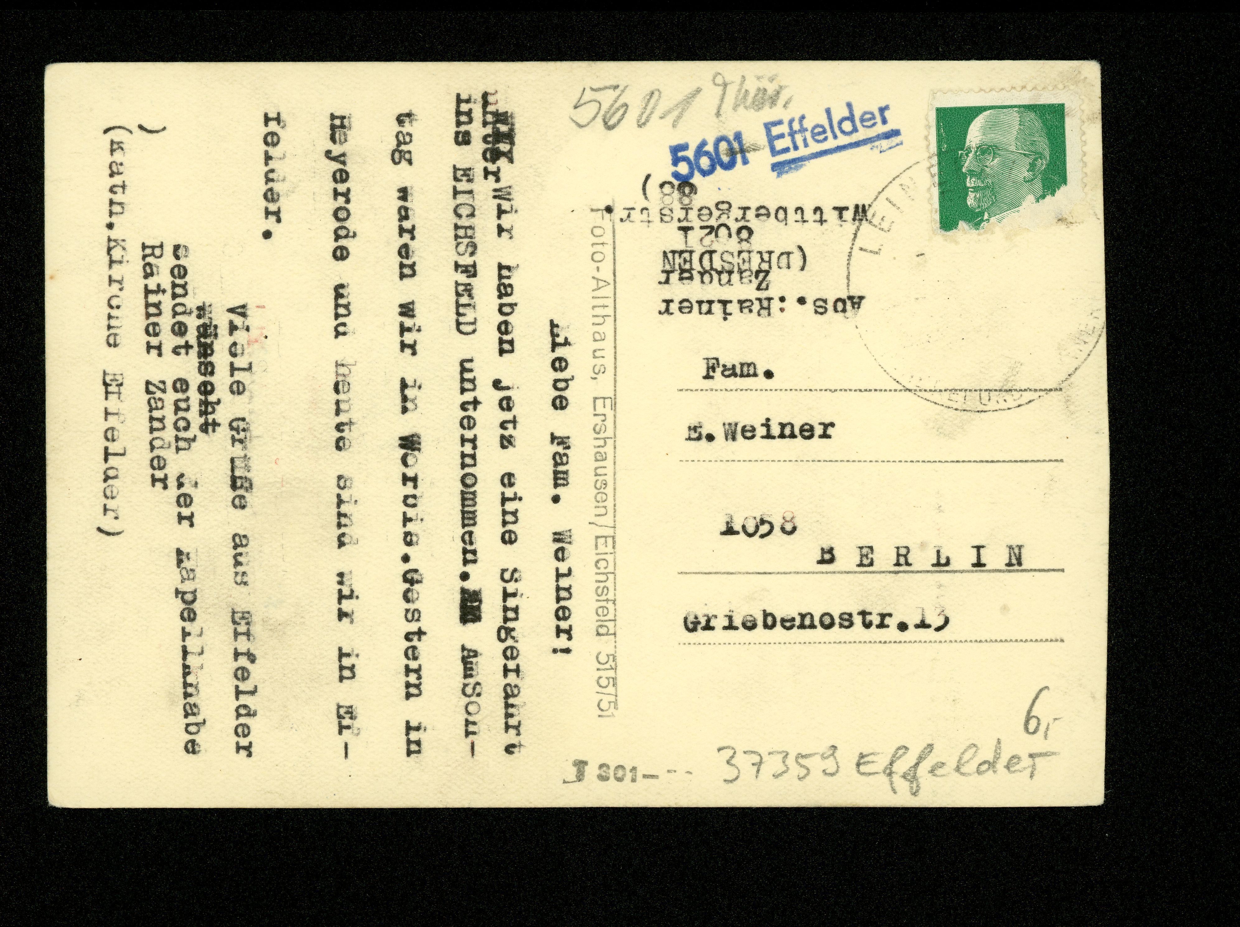 Ort Effelder Motive Kath. Kirche Format groß Verlag Karl Althaus, Ershausen Bestell- oder Individualnummer -