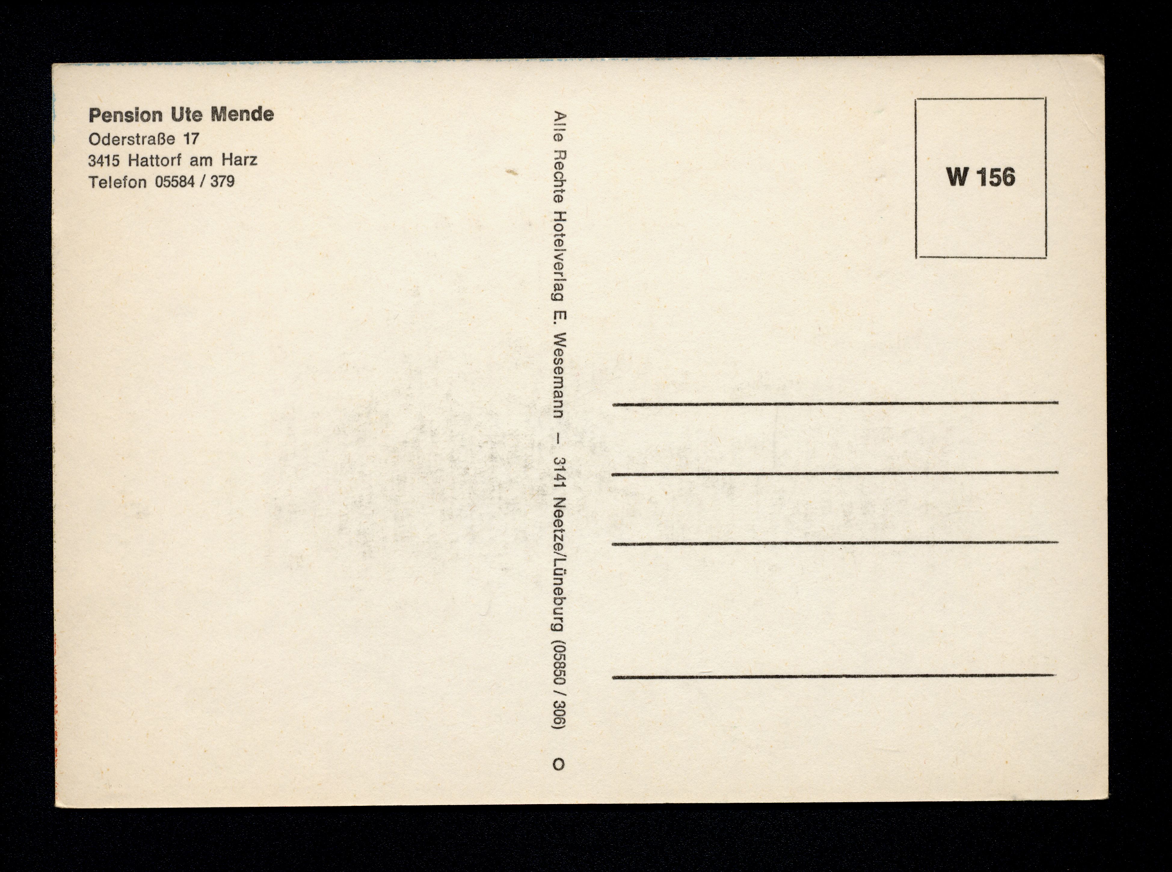 Ort Hattorf Motive Pension Ute Mende, Oderstraße Format groß Verlag E. Wesemann, Neetze / Lüneburg Bestell- oder Individualnummer W 156 Tags Pension