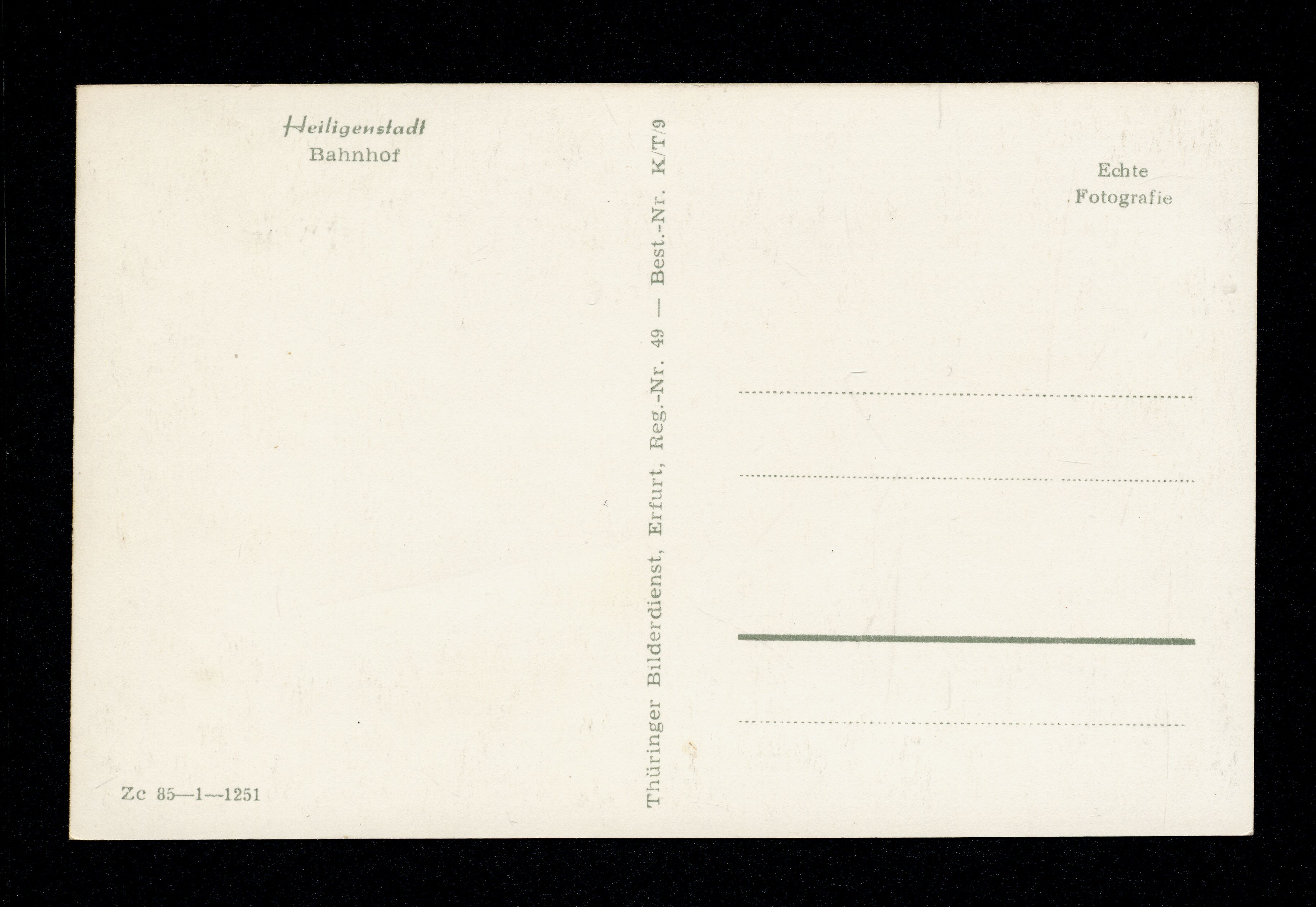 Ort Heiligenstadt Motive Bahnhof Format klein Verlag Thüringer Bilderdienst, Erfurt Bestell- oder Individualnummer Best.-Nr. K/T/9 Zc 85-1-1251