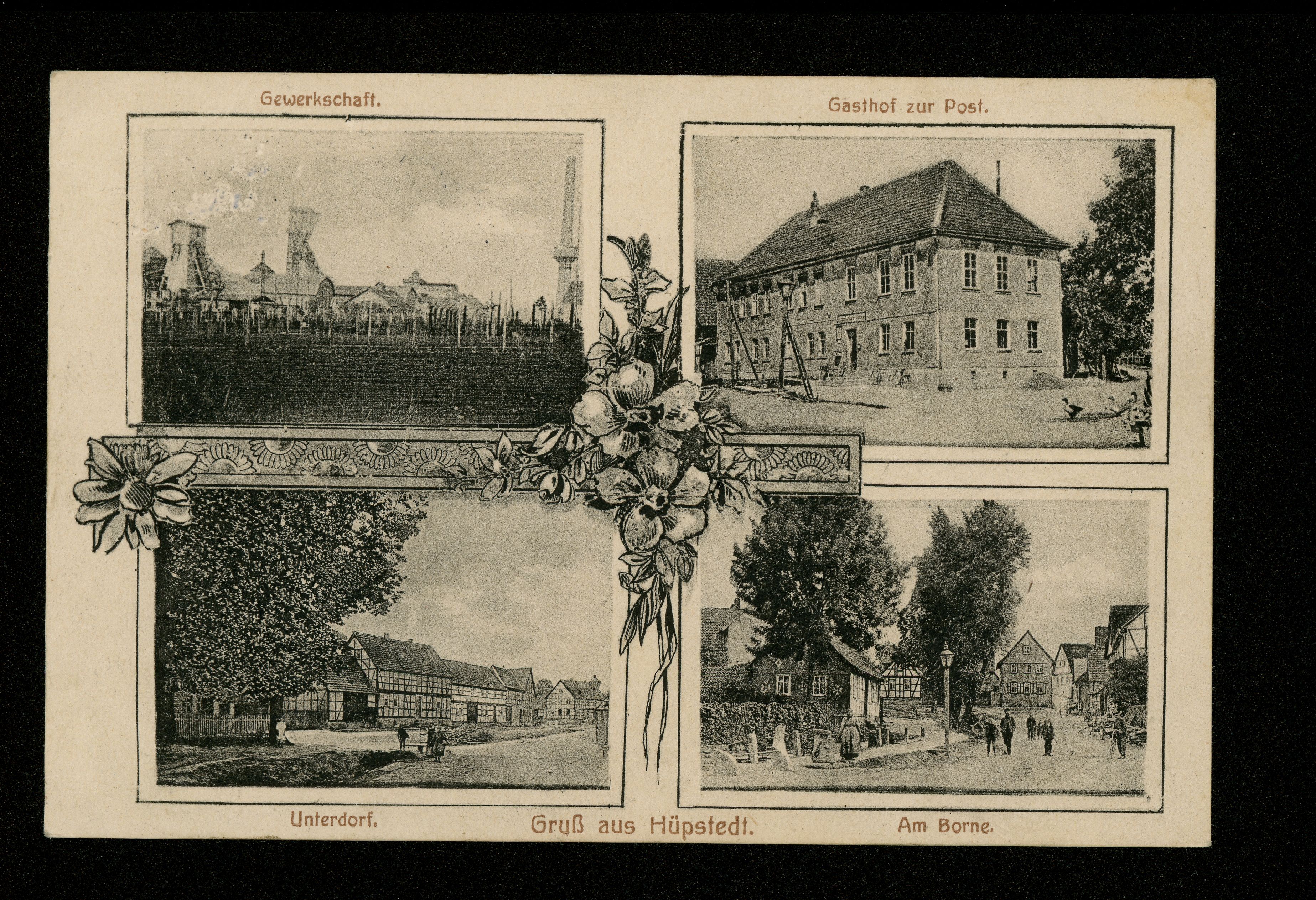 Ort Hüpstedt Motive Gewerkschaft Gasthof zur Post Unterdorf Am Borne Format klein Verlag Richard Gunkel, Hüpstedt Bestell- oder Individualnummer - Tags Bergbau Gewerkschaft Felsenfest Kaliwerk Schacht Kalibergbau