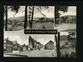 Blick zum Ort, Gaststätte ''Grenzhaus'', Teilansicht mit Kirche, Teilansicht |