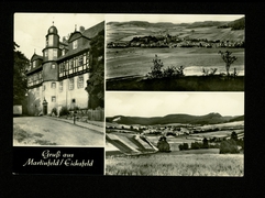 Blick auf die Burg, Mittelpunktschule u. Kirche |