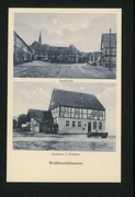 Gasthof und Schlachterei Heinrich Mecke, Dorfstraße mit Kirche u. Kapelle, Schule, Bahnhof |