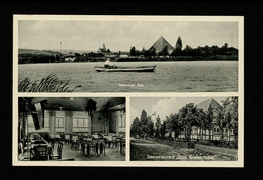 Seeburger See mit Blick auf Bernshausen, Badeanstalt, Seerestaurant ''Graf Isang'', Fischerhaus |