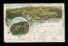 Der schönste Blick in das herrliche Werrathal ''v.d. Teufelskanzel gesehen'', Teufelskanzel, Allendorf, Ellershausen, Sooden, Ahrenberg, Orpherode, Meissner, Kammerbach, Frankenhain, Lindewerra, Bahnhof Oberrieden, Oberrieden, Grossalmerode, Bilstein, Ludwigst u Wendershausen |