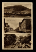 Schule, Kirche u. Kriegerdenkmal, Gasthaus z. Bahnhof, Carl Reimann, Kolonialwarenhdlg. Ignaz Kunkel |