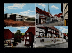 Schloss Gieboldehausen, Post, Rathaus, St. Laurentius Kirche, Sparkasse, Marktstraße Ecke Obertorstraße mit Springbrunnen, Gänsebrunnen |
