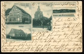 Gasthof z. ''Deutschen Haus'' v. Johannes Nebel, Forsthaus, Kirche, Panorama |