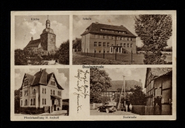 Panorama, Eckermann's Gastwirtschaf t, Kirche und Pfarrhaus |