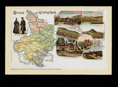 Heiligenstadt, Worbis, Dingelstädt, Hülfensberg, Kerbsche Berg, Gleichenstein u. Klüschen, Geismar, Burg Hanstein, Landkarte, Alte Eichsfelder Tracht |