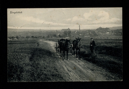 Pferdefuhrwerk auf Feldweg mit Dingelstädt im Hintergrund |