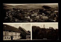 Panorama, Schule, Gasthaus E. Köthe, Kirche, Kleine Gasse, Pfarre |