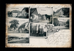 Schlotterhoses Gasthof, Cigarrenfabrik, Bahnhof, Kirche, Dorfstrasse, Schule, Lehrer Heinevetters Wohnhaus |