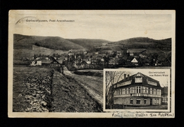 Totalansicht, Gemeinde-Gasthaus Inh.: Franz Mühlhaus, Bahnhof |