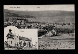 Kriegerdenkmal mit Kirche und Pfarrei, Gemeindegasthaus Herm. Trappe |