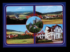 Blick zum Ort, Gaststätte ''Grenzhaus'', Teilansicht mit Kirche, Teilansicht |
