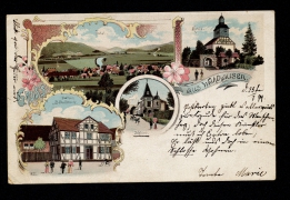 Kirche, Panorama, Rittergut, Gasthaus zum Roß, Besitzer H. Henkel |