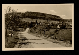 Landstraße mit Blick auf den Ort |