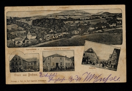 Totalansicht, Kirche, Gastwirtschaft zum Deutschen Hause. Joseph Krieter. |