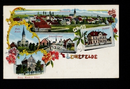Totalansicht, Kath. Kirche, Evang. Kirche u. Schule, Bahnhofstrasse, Postamt |