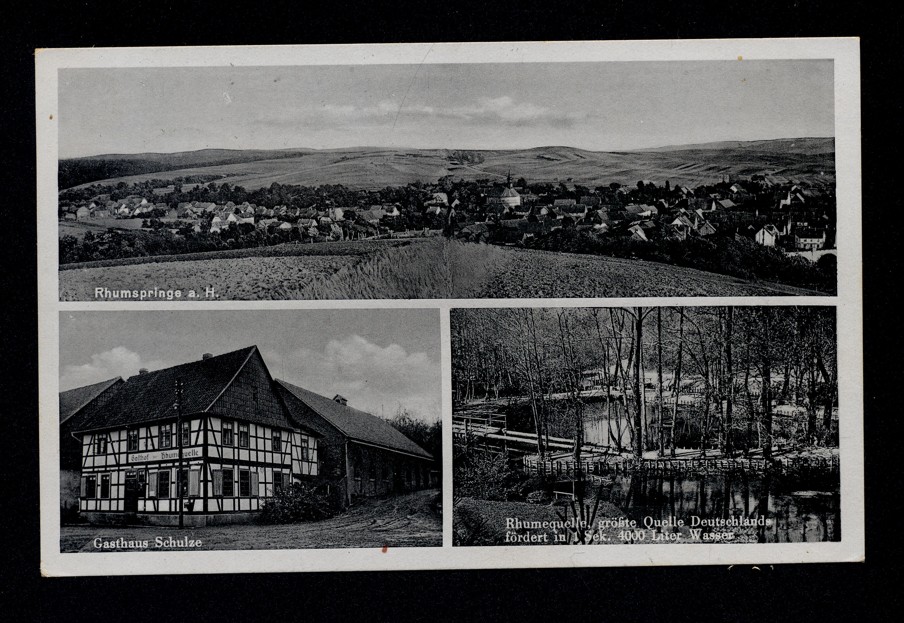 Ort Rhumspringe Motive Panorama Gasthaus Schulze Rhumequelle Format klein Verlag David Fischer, Herzberg Südharz Bestell- oder Individualnummer P 47 Tags Gottlieb Schulze Gasthaus Gasthof ''Zur Rhumequelle'' Ww. Schulze