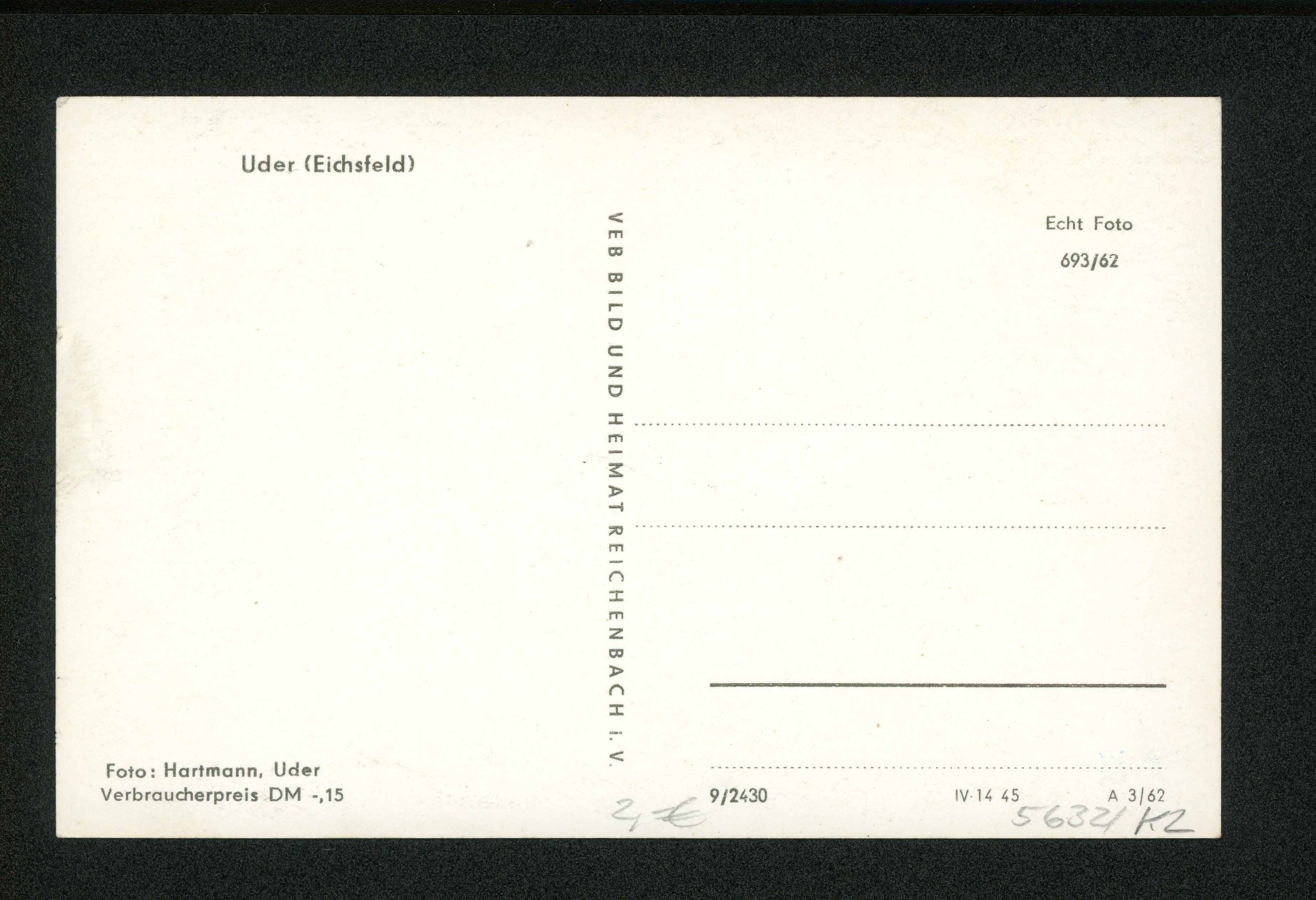 Ort Uder Motive Panorama Format klein Jahr 1962 Verlag Bild und Heimat, Reichenbach i. V. (VEB Bild und Heimat) Bestell- oder Individualnummer 9/2430 IV-14 45 A 3/62 693/62