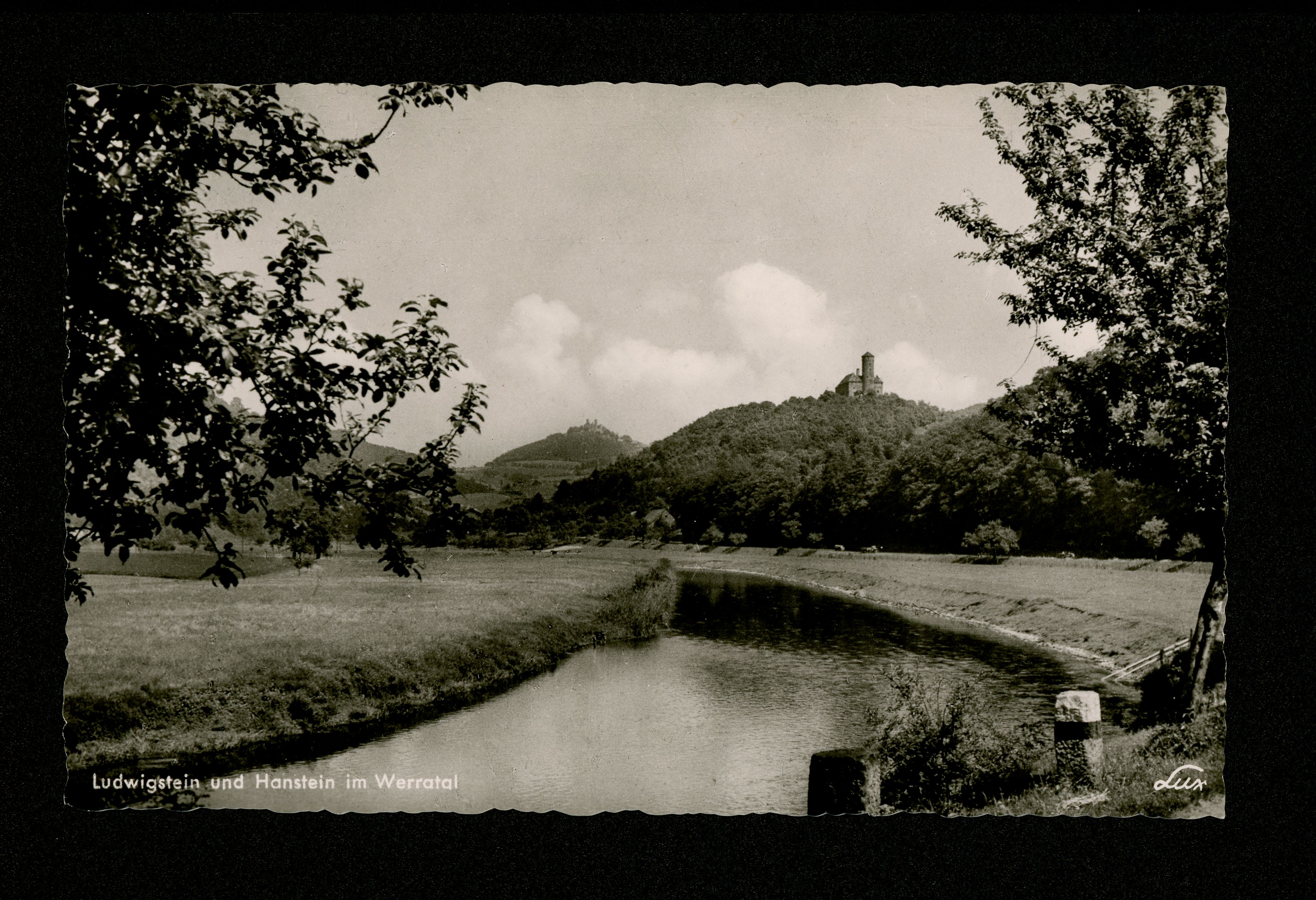 Ort Werleshausen Motive Zweiburgenblick Format klein Verlag LUX-Ansichtskarten-Verlag, Hannover Bestell- oder Individualnummer Lux Gö 81-o Tags Burg Ludwigstein Burg Hanstein Bornhagen