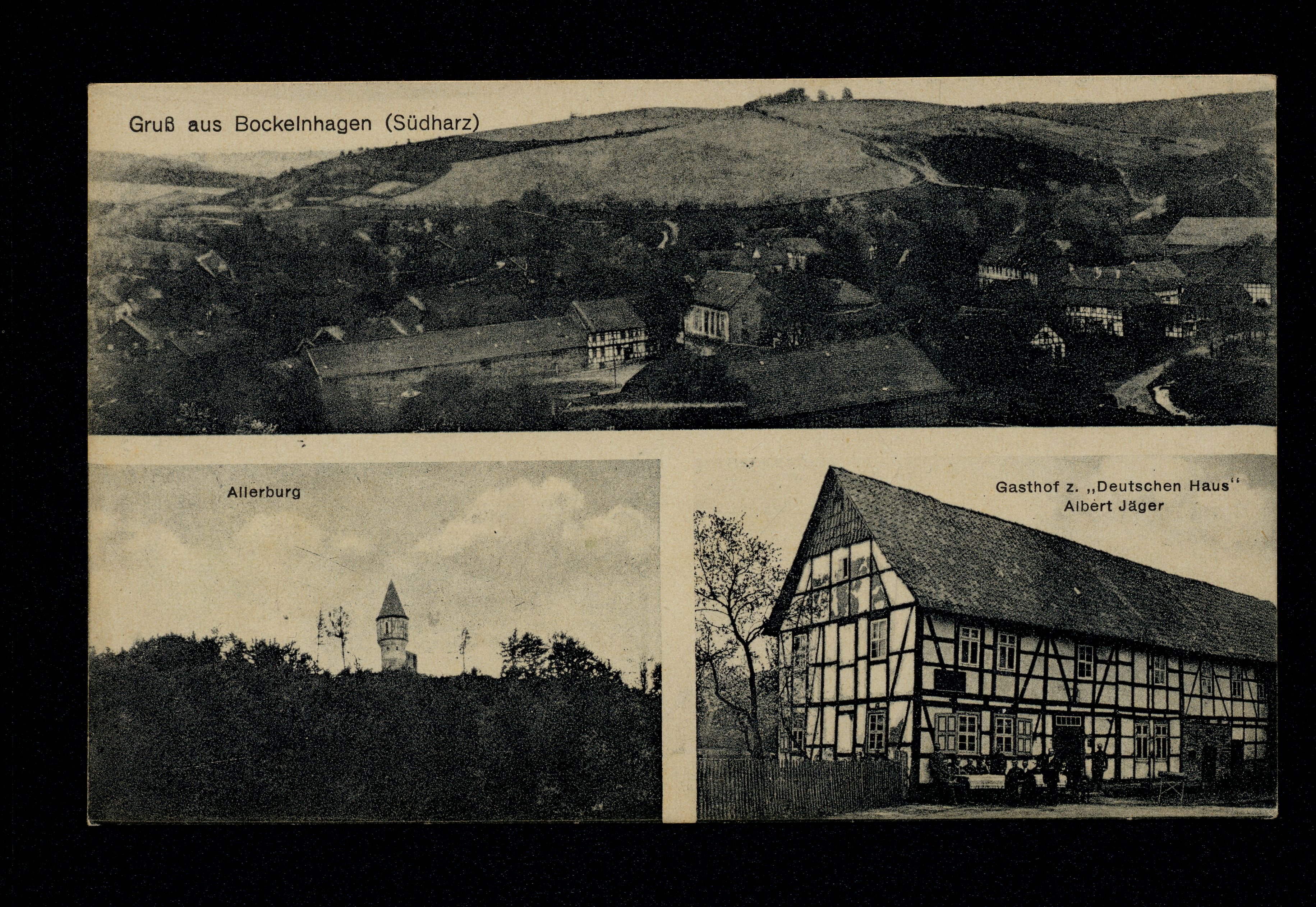 Ort Bockelnhagen Motive Teilansicht Allerburg Gasthof z. ''Deutschen Haus'' v. Albert Jäger Format klein Verlag Otto Künemund, Lauterberg a/Harz Bestell- oder Individualnummer a 920 Tags Gasthaus Burg Allerburg Zum Deutschen Haus